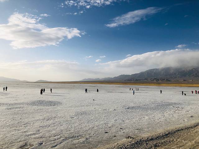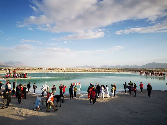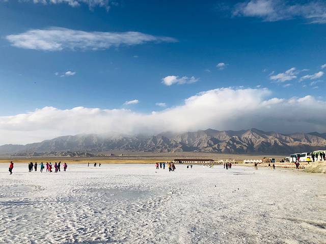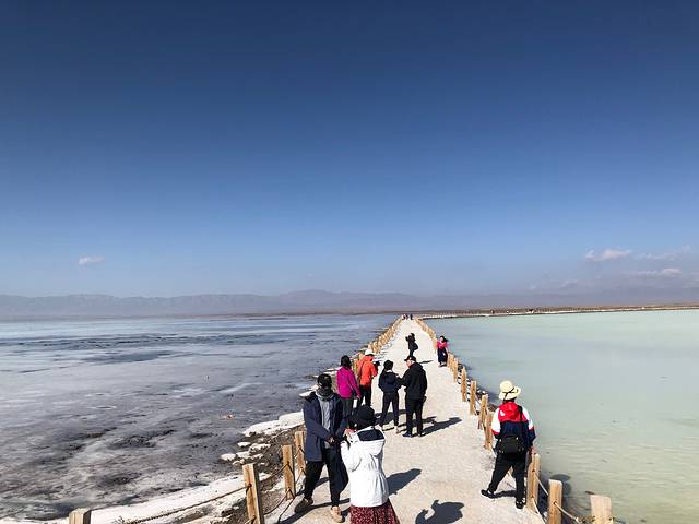 茶卡盐湖号称天空之镜,专业相机,航拍,可以捕捉眼睛看到的美景,再高像素的手机都是苍白无力,去了这里,我想学航拍和摄影了,太美的盐湖,坐了小火车🚄,去到景区尽头,一路上水天相交,盐湖与雪峰交相辉映的独特,“天空之镜”最佳拍摄时间是早晨9点之前或者下午5点,着鲜艳的红色,最出片,景区有卖红色披肩,或者租用民族的裙装,在这个景观下特别好看,因为可以走入盐湖里,不深水的,可以租用景区的鞋套(红色,蓝色)出片有影响效果,最好自己事先买鞋套去,买透明的,在某宝10来块,因为是著名景点,所以游客特多,珍惜我们地球的美景,不要破坏自然环境,不扔垃圾,以行动爱护它,让它的纯静得以延续,必须注意,手机电子产品,绝对不要沾上盐湖的水,腐蚀性很强,回去也要及时清理,拍照同时注意盐湖的洞,容易叉错脚掉进去,浙江人免门票,听说是浙江捐赠了资金维护这个景区