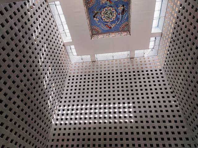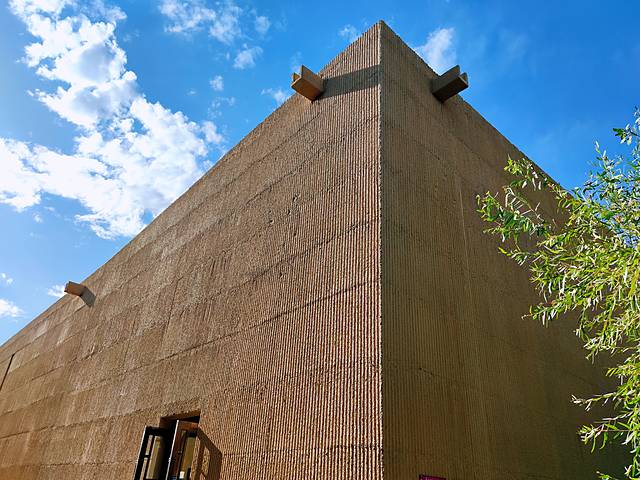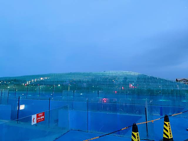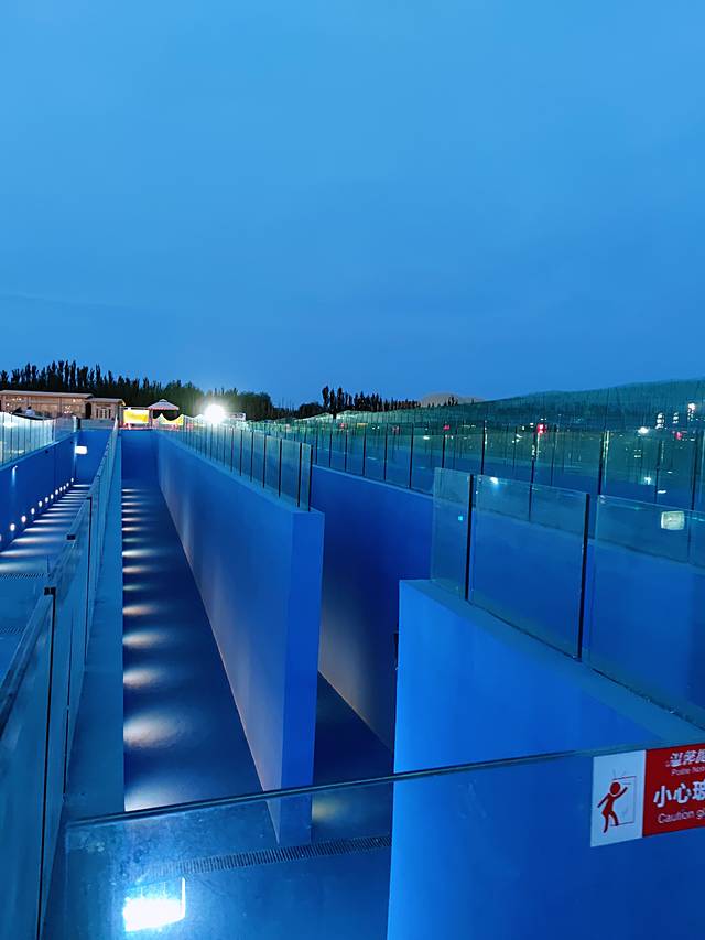 剧场造型感觉是沙漠中的绿洲,沙漠中的明珠,因为大西北黄沙飞舞,干燥的天气水资源很缺乏,剧场造型用玻璃打造的呈现的蓝绿色,呼应了敦煌壁画中的石青和石绿矿物质的颜料色