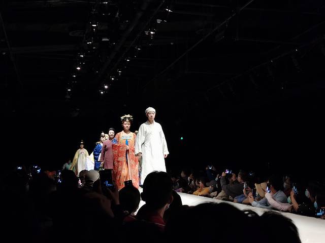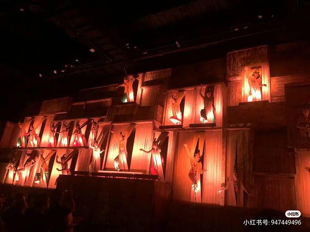 《又见敦煌》属于情景沉浸式话剧,这次演出没有座位,观众随着剧情主题的发展而在四个场景中走动,开头是人物走T台,介绍与敦煌有关的重要历史人物,两边橱窗的人物角色陈列,化死为生,加上阳关三叠式来回吟唱,舞台音响效果,开头感觉有些害怕的,因为入场后几乎是全黑的。