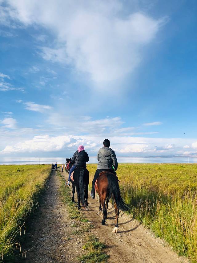 一片金黄色,满地的油菜花,一拍如油画,可以选择骑自行车环湖游,或者选择骑马