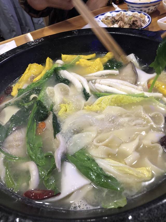 清汤鸡锅,先喝汤,有红枣,党参,姜之类的药材,鸡是本地的,肉质都不错,同广东的鸡是无得比的,但系在大西北稳到有鸡锅清汤喝已经很不错了