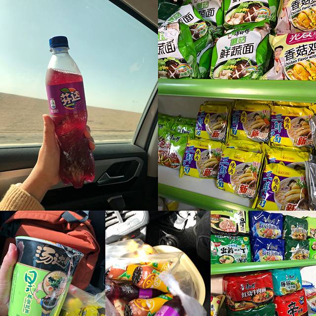 路上难得看到有一间便利店,看到我们熟悉的华丰公仔面,小时候最常吃的,在我们城市已经很难找到了,居然在大西北这片黄土高原看见,怕后面的路程无物资买,买了汽水公仔面一堆,今晚要尽快到酒店,估计又要很晚了,宿酒泉市阿克塞