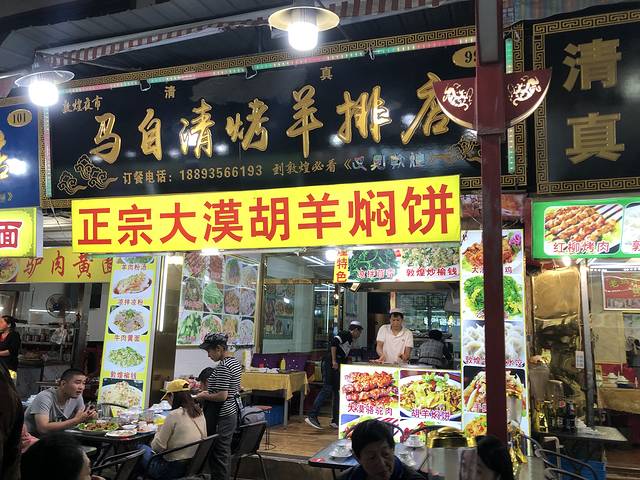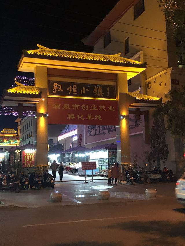 敦煌.沙洲夜市,烤串,炸串,烤包子,油糕,肉串,沙画,丝巾,骆驼工艺品,梳子,羊肉类,门口有网红茶饮店-放夏