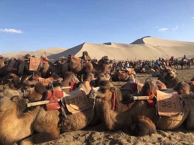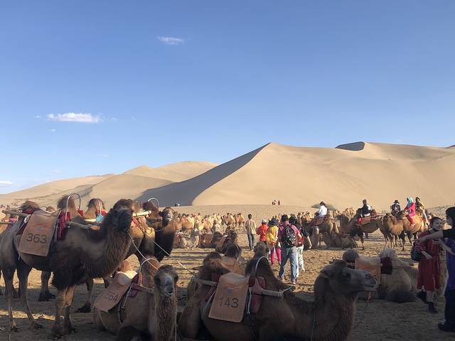 骑骆驼100每人,这边的骆驼比宁夏沙坡头的干净,骑的话要早点,因为骆驼都是附近的村民自家养,他们说早上出来工作,拉游客,大概晚上7点就下班了。过来拉游客的骆驼是自己家里,景区收费门票分一点给村民,其实也很少的,靠游客拍照的10元20元赚钱,有时候旅游旺季,骆驼来回走几趟,也试过累死了,真的不容易啊,如果大家去玩,尽量减轻下体重吧,打赏下骑的骆驼和拉骆驼的大哥,他们毕竟全程顶着大太阳拉着我们走的,辛苦了