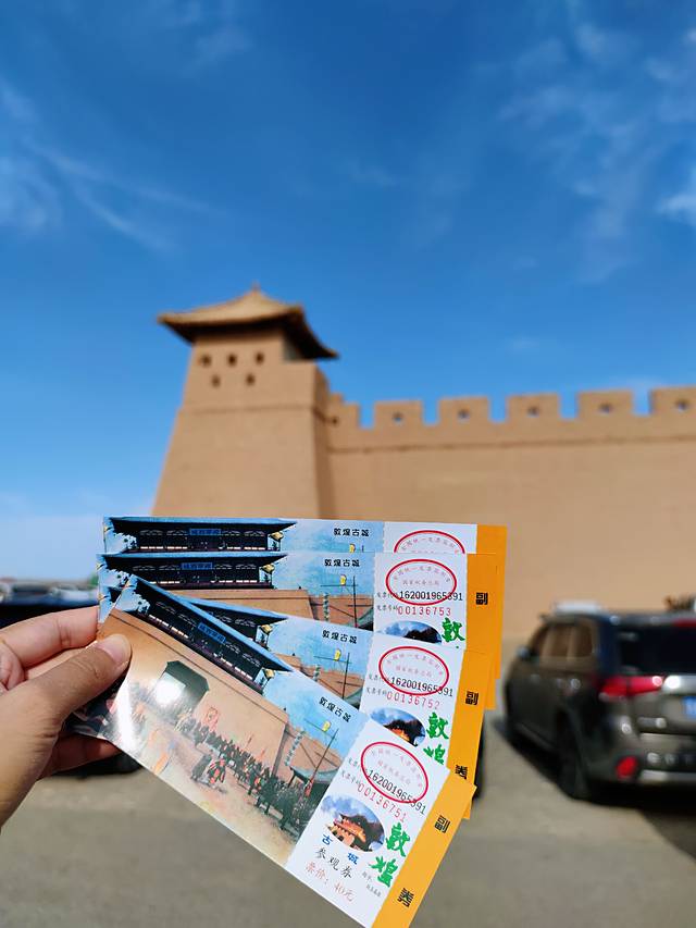 好似沙漠的售票中心,记得提前一个月网上订票,提前到达景区取票,分A类238元,B类100元,淡季还有D票。因为这次买不到A票,只能看B票,可以让我有机会再来,A票有两场数字电影睇,还原洞窟内景象,超好看,而且可以看8个窟,看到莫高窟最精华的窟,B类票看4个窟,是因为没能提前预约,应急参观购买的(每天限6000张)需要凭身份证预约购买。