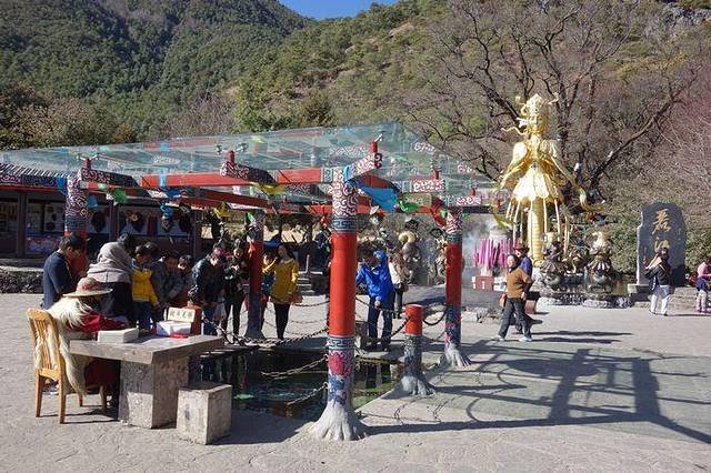 丽江玉水寨位于玉龙雪山下,丽江古城北,海拔2500米。是丽江古城河水主要源头之一,在举目是景的丽江,玉水寨的地位尤为突出,除了其秀丽不比其他景点差之外,更重要的是玉水寨还是丽江东巴文化的传承圣地和白沙细乐传承基地及勒巴舞的传承基地,丽江玉水寨有众多富有民族、地方特色的景观,如神龙三叠水瀑布群、三文鱼养殖生态观光、古树和玉龙雪山最大的神泉、东巴壁画廊、东巴始祖庙、白沙细乐展示、纳西族古建筑和传统生活展示、东巴祭祀活动、传统祭祀场、东巴舞展示、纳西族传统水车、水碓、水磨房、高山草甸风光等。