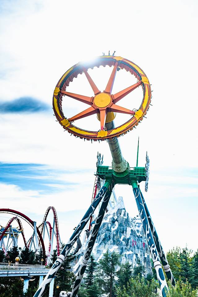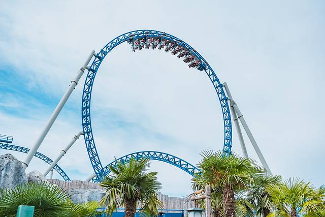 你还可以来到幻滇奇域的虎跳峡激流勇进,这是以云南著名景点——虎跳峡作为创作背景,打造出36米高的虎山主题包装。乘坐过山车经过180度的大回环,再从虎口脱险,直冲入河,激起漫天水雾,非常的壮观且过瘾。