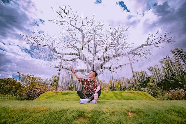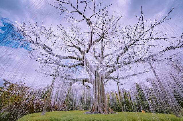 我身后的这件装置艺术“呼吸树”曾出现在“理想家园·古滇家宴3rd”上,通过“呼吸”主题的融入,裸眼投影和新材质led技术的结合,制造类似《阿凡达》中的视觉效果,让大树和草地鲜活起来,让我们得以享受来自大自然的深呼吸。虽然来古滇精品湿地公园是在白天,没有看到“呼吸树”最美的一面,但是依旧惊艳到了我。