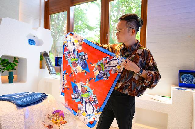 比如邀请国内知名新锐设计师王婳入滇驻地考察,她偶然间发现,以X光成像的板蓝根脉络与传统扎染图案非常相似,然后结合传统工艺,共创出全新的“古蓝新礼”
