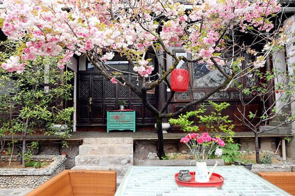 白沙古镇显然比去年的商铺多了一些,但依旧冷清。无意走进一间咖啡馆,院子里的樱花树枝叶茂盛,花瓣落英缤纷随风洋洋洒洒,屋内几乎全用旧物装扮的点滴,每一处都在用心。