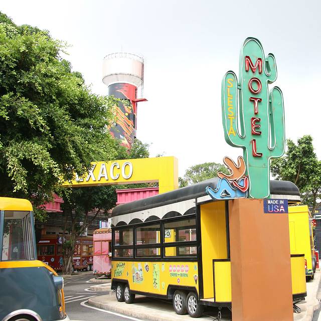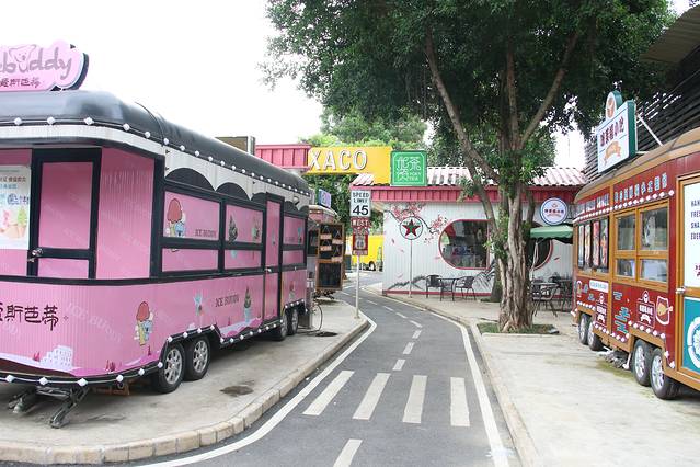 街区内停满了五颜六色的餐车,餐车上贩卖着不同种类的小吃,仿佛再现了美国66号公路当年人来车往的繁荣。