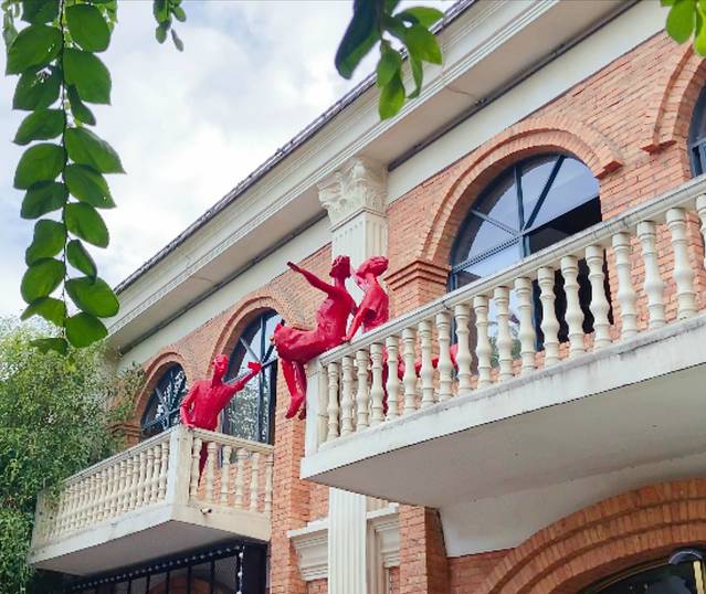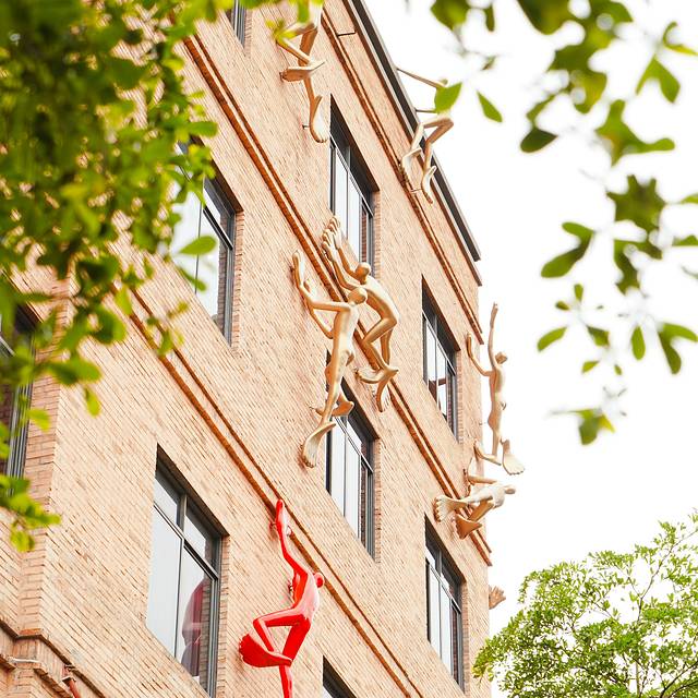 作为一个文化创意园区,百益上河城内有不少富有创造力的雕塑和创意设计。当这些雕塑设计和周围的红砖墙产生奇妙的融合,就展现了现代艺术巨大的包容力和活力。