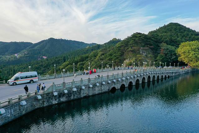 第一天抵达庐山,在上山前往牯岭镇云境酒店的路上,路过芦林大桥和芦林湖,芦林大桥桥坝一体,拦水成湖,湖水如镜,你们猜一猜哪位历史伟人曾在这里游过泳?