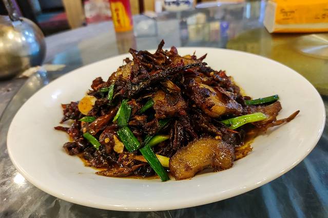 我所选择的两江楼,这就是本地人开的本地人的餐厅,他家的辣椒炒肉真的超级好吃,将辣椒剪成片儿,再晒干,搭配上肥美的五花肉。就这一盘儿,我能吃下去好几碗米饭。