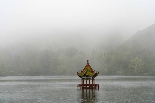 含鄱口的奇妙就在于一个“函”字,形成“千里鄱湖一岭函”的气势。宽敞的空间 ,辽阔的视野,低舒的葱茏,山的静止,水的流动等种种情致极度不相同的美相互对照、相互辉映、相互连接成为一体,幻妙与旷达是这里的精妙所在,魅力所在。