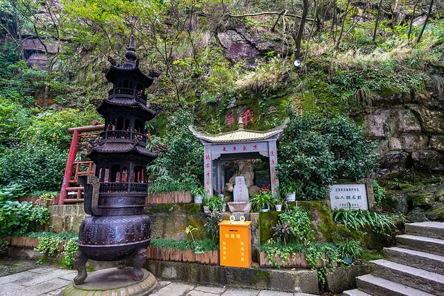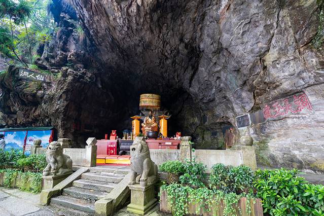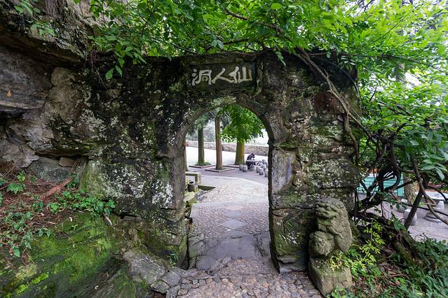 这里的飞岩可栖身,清泉可以洗心,俯视山外,白云茫茫,江流苍苍,颇有远离尘世的感觉。这里不仅是历来最为游人所喜爱的胜景,而且是道教的福地洞天。相传唐代名道吕洞宾曾在此洞中修炼,直至成仙。后人为奉祠吕洞宾,将佛手岩更名为仙人洞。