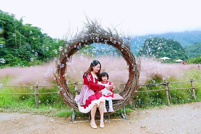 园区内,还有泡泡制造机!朦胧七彩的泡泡,在粉黛花海的空中轻轻飞舞,为这片粉色大海,增添几分“童话王国”的浪漫!