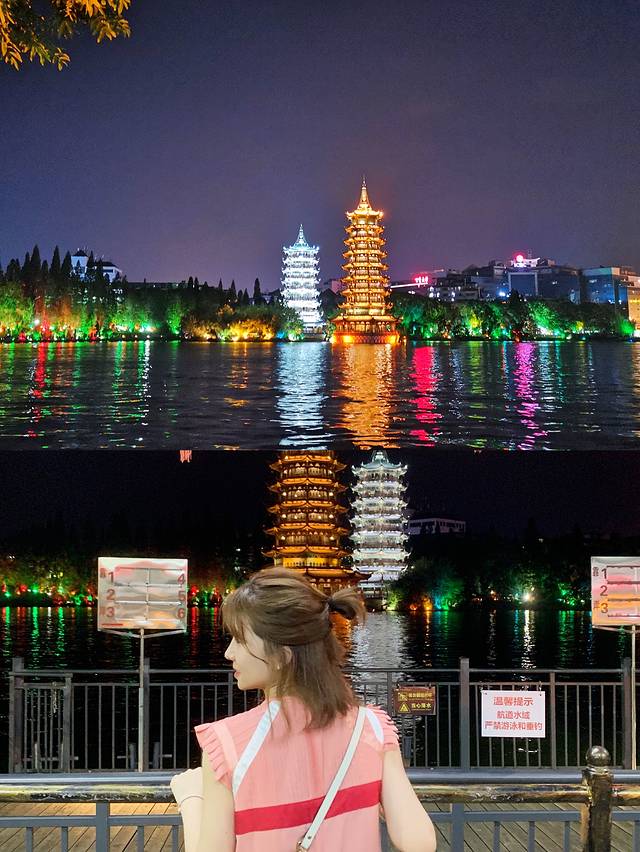 🌟tips:我们去得晚,没有定到两江四湖的船票,就在两江四湖边散步。走的是融和到观音台这一段,景色好!还能看到日月双塔。后来听民宿老板说,无论白天还是晚上,还是很值得乘船玩的。全程1.5h,会经过很多景点,象鼻山等。