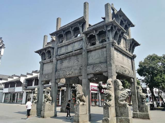 里面分成三部分,一进门的城楼、徽州府衙,许国石坊,然后就是中间的商业化比较浓的”步行街“,往里走是散落在古镇深处的景点,既有博物馆,又有徽文化特色景点