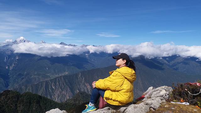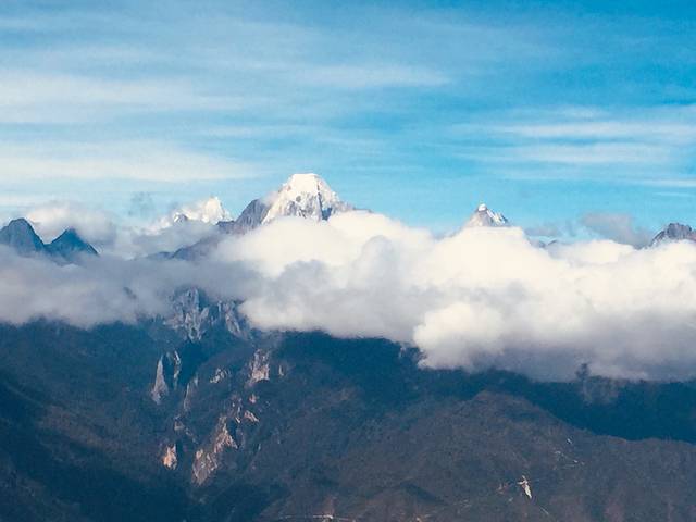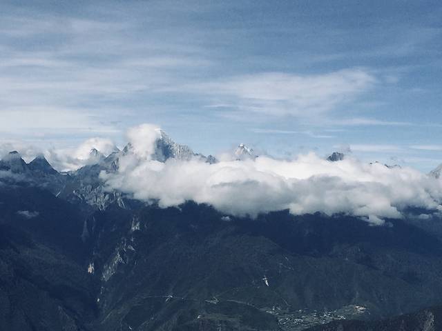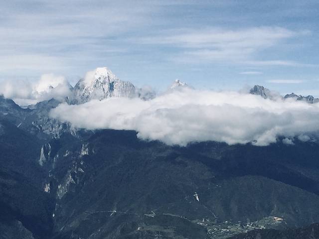 第三天一大早前往玛娜茶金,这是条旅游公路,风景秀美,远处美景美不胜收,9点左右到达玛娜茶金观景台。看到了若隐若现的三座雪山,央迈勇、恰朗多杰、仙乃日,好美呀!可惜只有20分钟左右就被云层覆盖了,等到下午三点多钟都没有出来,所以说上去看雪山还是需要运气的,呵呵😄!不过留点遗憾,下次再来!