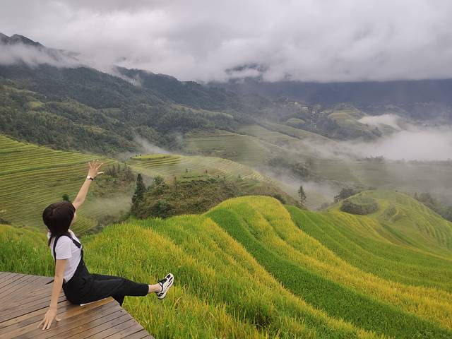 因为凌晨飞机,第二天睡了个懒觉,收拾完给店家打的电话,结果特别赶,还好步行不远有12点桂林站出发的班车,50/位,到山下,下车买的门票,自己去买80/人,然后上车继续45分钟盘山路,个人因为晕车,这段路很是煎熬……都是泪,大巴车直接送到景区内停车场,全程3小时左右,然后坐观光车上山,店家一般会在这接,记得住宿定高一点的位置,尽量安排一整天在景区内,或者2天,因为来一次真的不容易,原计划第二天走,可以2.30坐观光车到停车场,做最晚的大巴车3:00回桂林,纠结了一下,想吃这里新鲜的竹筒鸡,选择改变行程,多住一晚,住房店家还给了优惠,还认识了两个善良的小姐姐,看了第二天清早的云海,美的不要不要的👍