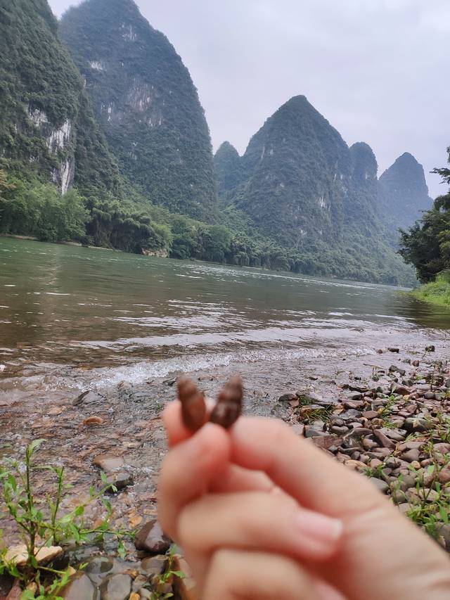 拍完照,顺着漓江溜达了很久,很静,江边有鹅卵石,可以坐下来独处一会,好好思考下人生哈哈哈