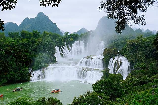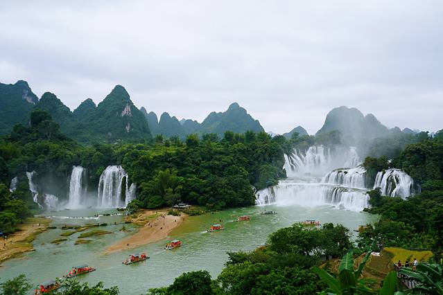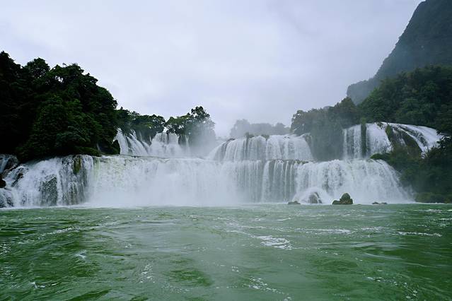 德天大瀑布的门票115块,是门票和摆渡车的费用,停车场距离景区还有10公里。另外,瀑布必须近距离观看,坐竹筏单收30块,进去了一定要爬山登高望越,下来体力不足的,坐观光车回到摆渡车的地方,观光车单收10块。算下里,这票价不便宜了。建议预留半天时间,慢慢玩,毕竟爬山还是有点儿累的。抱团的那些听导游喇叭喊,只给2个小时,不让爬山。这个时间也根本来不及爬山,年轻人至少都要3个小时。