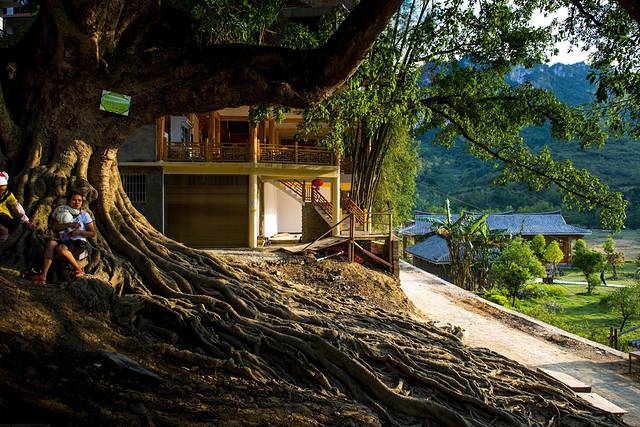 初次来到这个景区的时候让我感觉到了十分的诧异,来之前对这个地方有了几分了解,但是从进入村子开始就是通过乘坐着猪槽船然后有人划船进入溶洞,在溶洞中会有几分的阴暗,有些船夫也会给你讲一些关于这里的往事或者是传说,不一会儿就进入到了村子,眼前一种柳暗花明又一村的感觉涌现在眼前,因为从昏暗的溶洞经过,之后你眼前看见的却是百花盛开的一片天地。