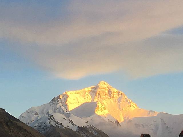 不得不说大本营上面是真的冷,风很大,头都快给我吹炸了。拿出手机拍了几张照,录了几段视频,手都要冻僵了。到后来太阳落山之后,更是冷之又冷,头痛欲裂,每走一步头都在痛。。。最终还是坚持着与珠峰纪念碑合了影,看到了日照金山,录了几段视频,心满意足!就是头好痛啊哈哈,晚上住在大本营山脚下吃了一片小姐姐的止痛药,干了一碗泡面,感觉好多了,浏览着手机里拍到的照片,真开心鸭!