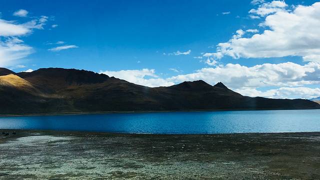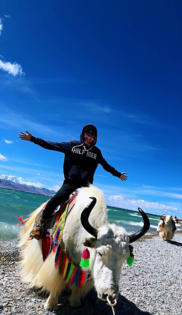 看着近在眼前,却坐了将近1小时的车才到了湖边,不得不说纳木错的景色十分令人震撼,湖水是真的好蓝,配上纯净的天空,宛如人间天堂。