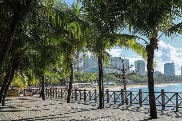椰梦长廊有20多公里长,从凤凰机场下飞机,沿着海滨路一直开往亚龙湾,沿途的海滨栈道与洁白的沙滩,就是椰梦长廊,从人烟稀少到人潮拥挤,顺着海滨大道像是一条绿色的丝带,镶嵌在三亚的海岸线上,高大的椰子树,让海南的夏日即使酷暑难耐,也能在树下找到丝丝凉意,都说海南闷热潮湿,但是6月的三亚只要有枝繁叶茂的树木遮挡,也不会觉得很热。