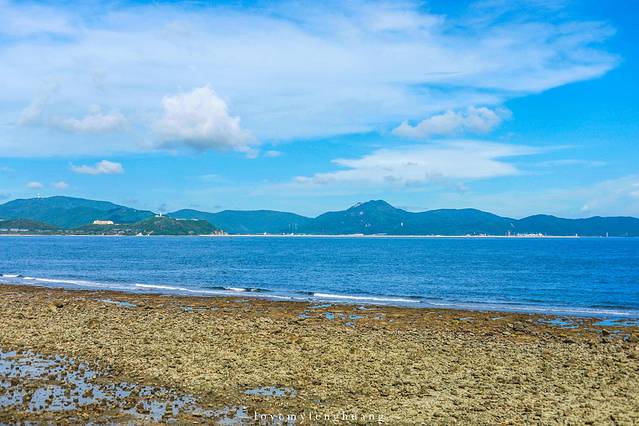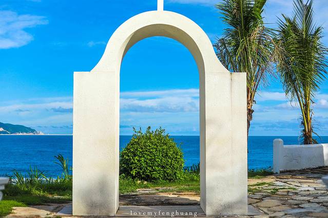 而从小东海就能看到不远处的蓝顶白色的小房子,仿佛来到了圣托里尼,沿着小东海再往山上走,来到一处半山半岛的高尔夫俱乐部,不进入俱乐部,沿着左侧的小路就能找到这处秘境之地,这里也是小东海的摄影基地,建议早上或者傍晚来,早上人比较少,傍晚的光线比较好,如果天气好的话,落日余晖照耀着海面,泛红的天际,特别的浪漫。