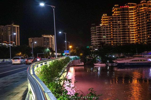 夜晚漫步三亚河畔,真的好安静,渔人码头上停了很多快艇,好像是来到了有“帆船之都”的青岛一样,游览三亚河的方式有很多,最简单的就会从第一市场出来后,在河边漫步,有的地方可以亲临到水下,就在第一市场附近,河上修建了许多亲水栈道,有的石墩子比较窄,一次只能一个人通过,第二种方式是站在桥上,将远处的街景、高楼大厦和三亚河尽收眼底,第三是坐船游览,就在渔人码头就有快艇游船可以乘坐,相比其他地方的很多游船,乘坐快艇,一下子高大上了许多。