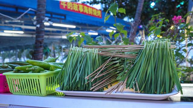 关于蔬菜,海南的餐桌上,水果、海鲜、果汁在海南的餐桌上,蔬菜其实并不多,如果想要点蔬菜,一般无非是两种蔬菜,地瓜叶和四角豆,就像北方冬天的大白菜一样的普及。(爱心)(爱心)