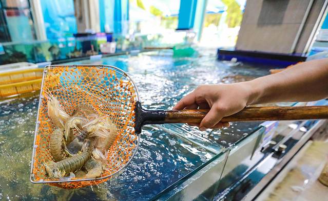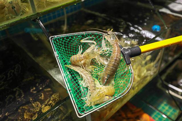 省去了在市场挑海鲜Seafood的时间,在阿浪氵每鱼羊店里就可以选海鲜,选完直接拿去后厨加工,可以选择清蒸、辣炒、白灼等烹饪方式,服务员会问你是否要加辣,如果不太能吃辣的小伙伴,来个微辣就可以。