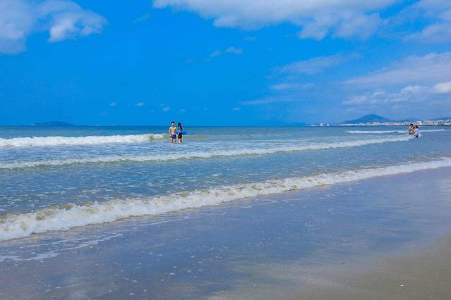 除了长长的绿色走廊,与之相连的是银色的沙滩和湛蓝的大海,去的时候,赶上了好天气,在太阳光的照射下, 细软的 白沙 ,清澈的海水,每一来到的人都按耐不住兴奋的心情,和大海来一次亲密的接触。