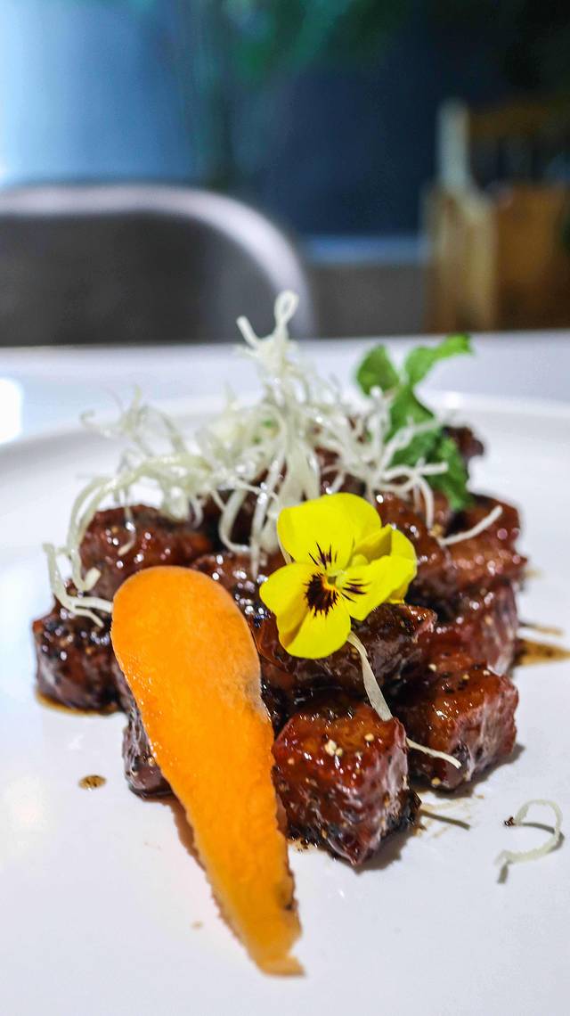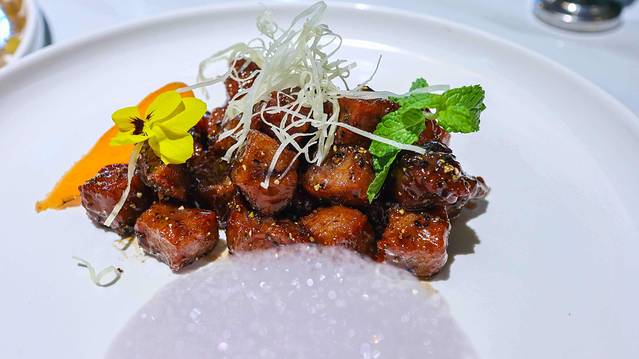 牛肉粒有了泡沫的点缀,这道菜看起来更加时尚,牛肉粒很嫩,而且很入味,有嚼劲,淡淡黑胡椒的味道,很好吃。