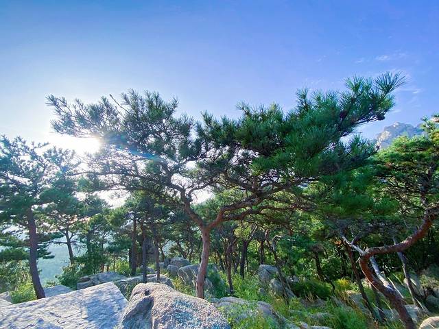 我喜欢登上山顶,俯瞰大海的那种开阔的感觉。也喜欢在某一处听着大风穿过松树沙沙的声音。记得当时看到那几颗松树就想到了黄山的迎客松,其实长得差不多,可惜生不逢“处”,黄山的迎客松无非是幸运的被选中,作为宣传的代表/典型。崂山山顶上的那几颗松树倒是并不高,也不是那么挺拔,假日时日,应该也差不多。请不要喷,为什么总是想到黄山,是不是我只攀登过黄山,在炫耀什么,并没有,因为爬过的山也有很多座了,不过没有精力一一列举,只是觉得有点相似而已。