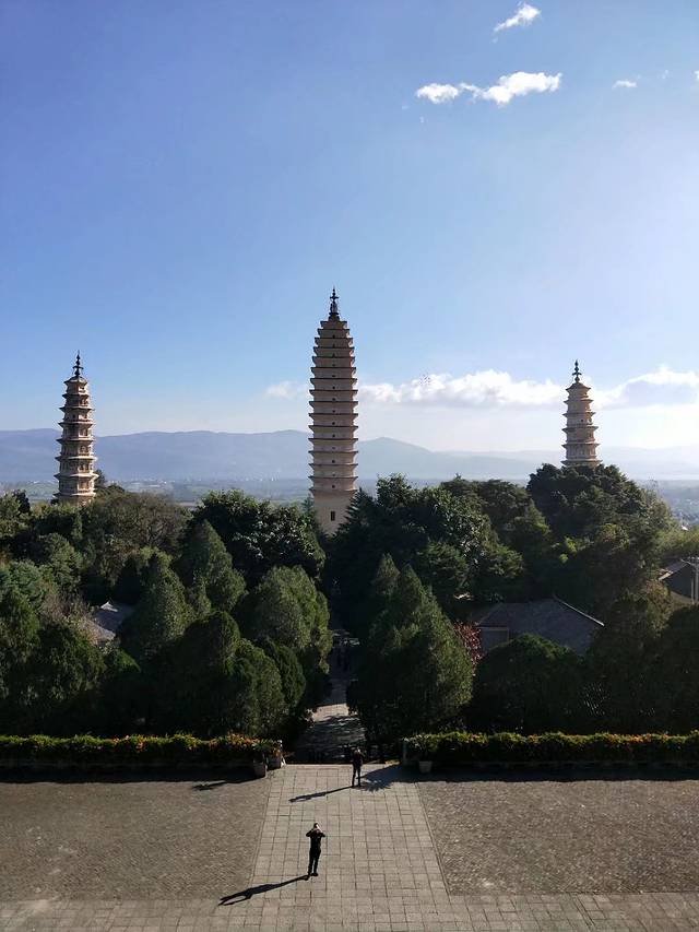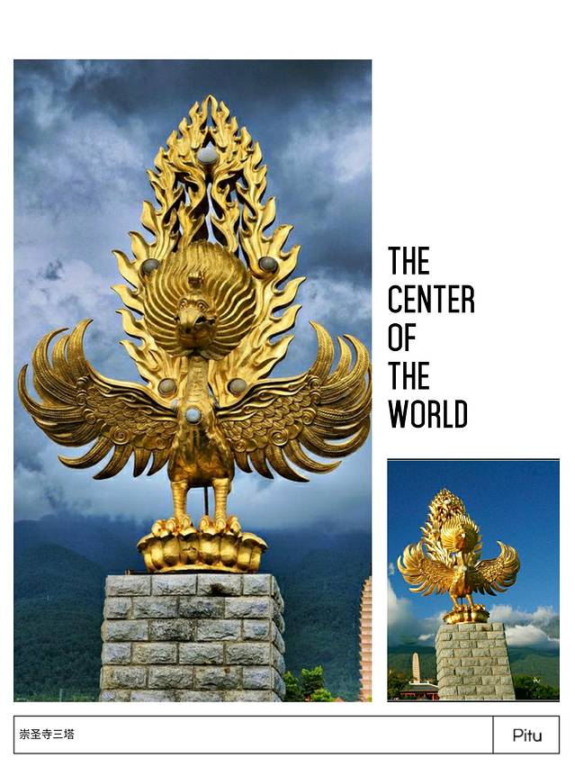 崇圣寺,经历千年的风吹雨淋,三座塔依旧屹立在苍洱之间,整个寺院大气磅礴、金碧辉煌,重现了“灵鹫山圣地,妙香国佛都”胜境。崇圣寺前面的大鹏金翅鸟,依旧金光灿灿,威风凛凛,庇护着苍洱这一方水土的人民安康乐业。