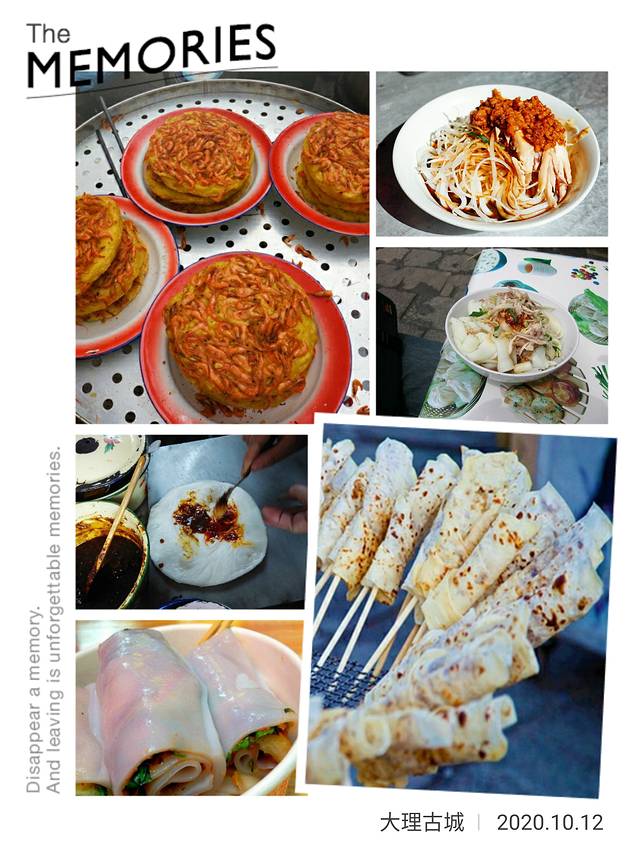 在大理古城,小吃遍布一条街,饵块乳扇随处可见。早上可以吃米线、饵丝、豌豆、粉油条,中午可以到人民路上吃卷粉、豆腐、假鸡肉、凉鸡米线、抓抓粉等美食。至于主食,这里有很多家像段公子餐厅这样的云南菜餐厅,来古城一定要品尝一次地地道道的云南菜。饭后小零食,可以去红龙井的段记土特产店,这里有很多的大理土特产小零食,有各种各样的果糕、果脯、雕梅、小麻花、牛肉干、果茶果酒等土特产,是旅行必备的解馋小零食。