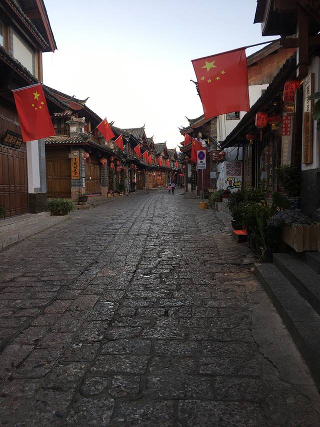 早上7点的丽江古城街道,还没苏醒;我们在等车。