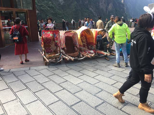 这个可不能坐,一共没多少台阶;走一半,他们会忽悠,说没多少台阶了,优惠,实际真没多少台阶!自己走走吧