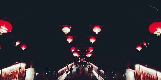 艺术河畔晚上会开灯,河畔的江边立了好多的灯,还有情浓桥的灯笼也会全部点亮,场面特别的壮观,但是十点以后就会关闭。