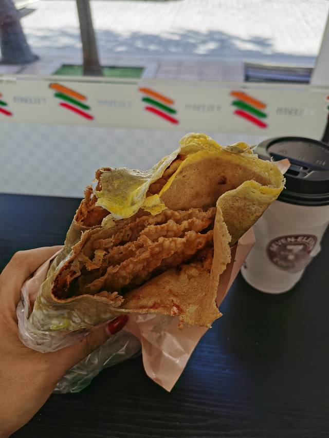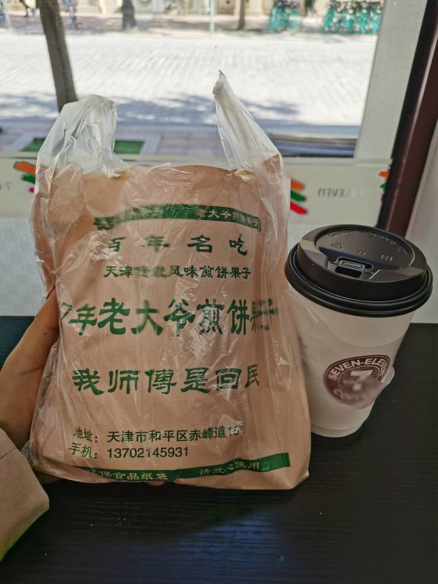 说是睡到自然醒,基本上午就是不指望了。早饭就在酒店附近买了个煎饼果子,不要以为是什么名牌连锁,街头小推车基本都打的这个招牌,两个鸡蛋加薄脆要9元呢,连一口菜都没有,关键份量太足,一个没吃完都可以坚持到下午五点不饿。另外,这种煎饼果子配咖啡这种组合大概只有我们能做得出来,不过为什么说北方是便利店的沙漠?感觉天津的便利店挺多的啊,看来公众号上的文章不能太信。