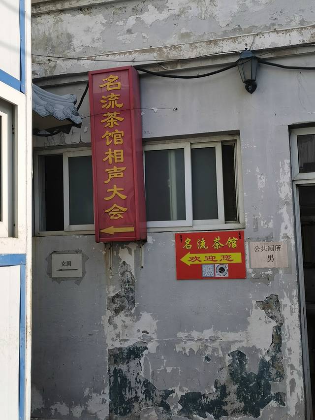 名流茶馆据说是天津口碑最好的相声茶馆了,新华路店应该是第一家店,1991年创立,老店嘛,肯定应该在市中心的老楼里,位置可能狭小,但是很有茶馆里听相声的感觉啊!我们原本以为自己已经做好了充分的心理准备,但是仍然过门而不入,差点没找着地方,谁会想到大名鼎鼎的相声茶馆竟然在派出所背后!