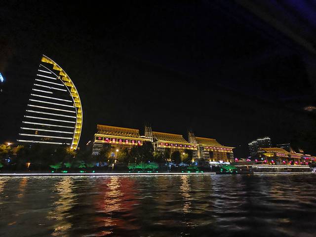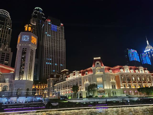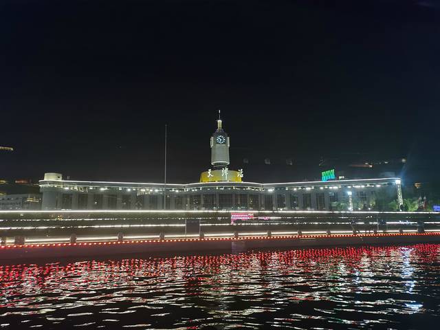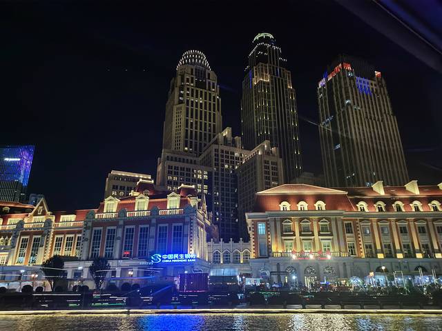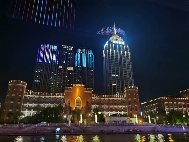 我到任何一个有河或者有江的城市都喜欢坐个游船看看城市夜景。海河游船有四个码头可以坐:天津站码头、古文化街码头、意式风情区码头和大悲院码头,我们打车去的是离住的地方最近的天津站码头,晚上的票都是100元,可以当场扫码购买,我们运气好,被我们抢到七点的最后两张票。河上风大,某姐姐~还跑去买了块大毛巾准备披上挡风,谁知道游船竟然是有封闭的船舱的,哈哈哈哈!船上还有人现场解说,讲满全程50分钟,确实可以让我们更好地了解天津这个城市。