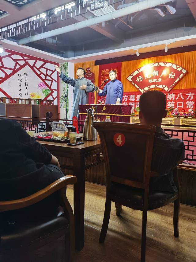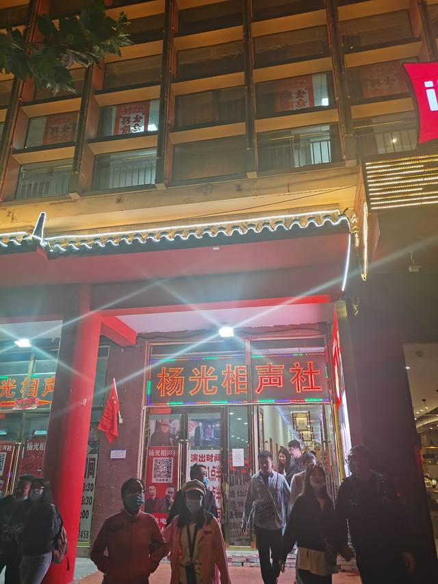 今天的重头戏是听相声,杨光相声社就在古文化街外面,是著名相声演员杨少华和儿子杨议创立的,还是颇有名声的。在古文化街上也有现场卖票,我们是在大麦上提前订的票,买了最贵的130的票,坐在第二排呢!