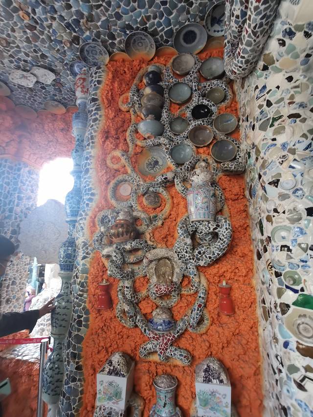 瓷房子博物馆也就在附近,听完相声就顺便去了。这里原本是一栋法式小洋楼,后来贴上了各朝各代窑址中的瓷片进行装饰,楼内还展示了很多古家俱,真的是很有特色的一处地方,可惜某姐姐~的密集恐惧症犯了,不肯进去也就罢了,连我拍的照片也不敢看。