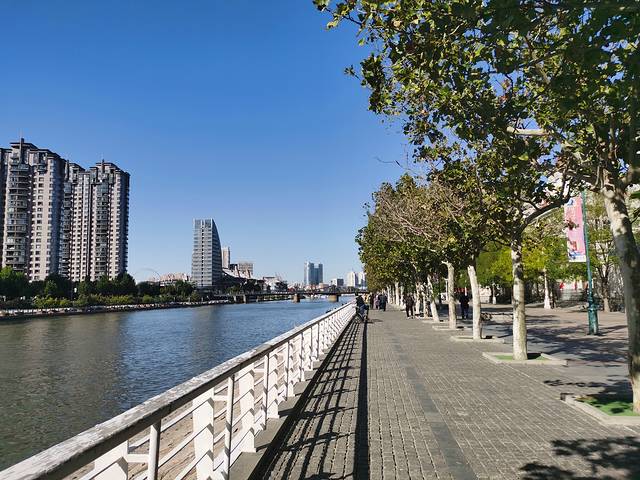 然后出门往意式风情区走,依然是要穿过解放桥,昨天晚上的海河风景在阳光看起来也别有一番韵味。