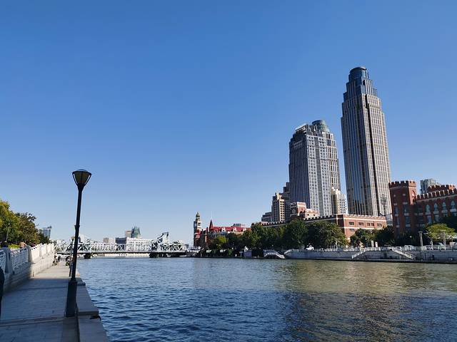 其实是头一天晚上大约8点左右到的天津,从天津西高铁站打车到解放桥大约30元,一路沿着海河行驶,可以大概浏览一下海河景色,而且能就看到了著名的天津眼。晚上也顺便看了一下解放桥、世纪钟广场和津湾广场,这个在后面也会出现,所以就不多记了。